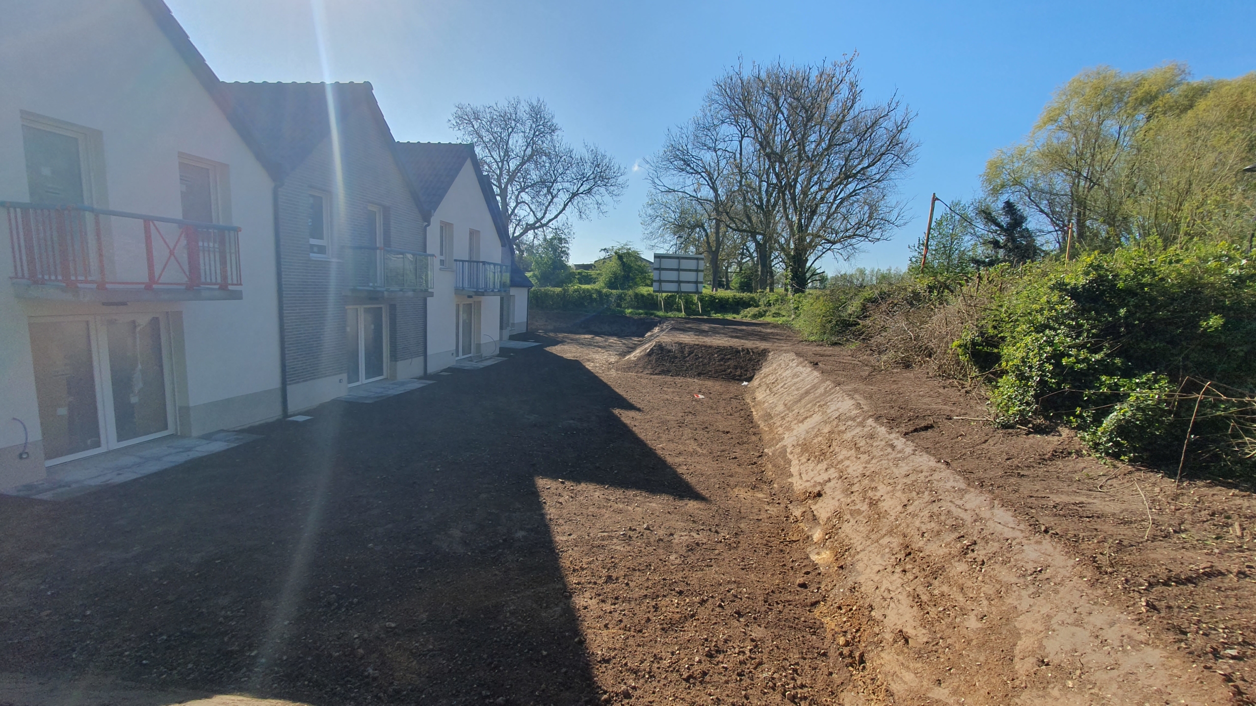 - Réalisation des plateformes des maisons et bâtiments sans sous-sol (27 maisons et C1 + C5) pour mise à disposition à l’entreprise de Gros Oeuvre